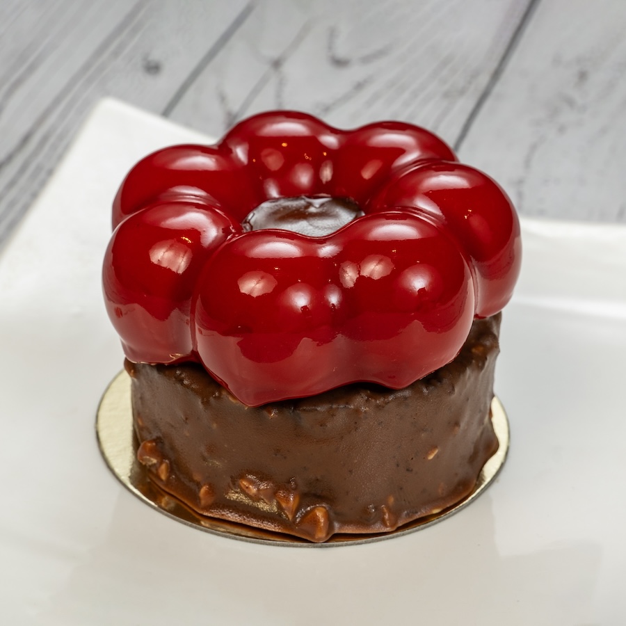 Hazelnut Chocolate Tart: milk chocolate mousse,chocolate sponge,hazelnut chocolate coating,hazelnut chocolate cream, milk chocolate glaze